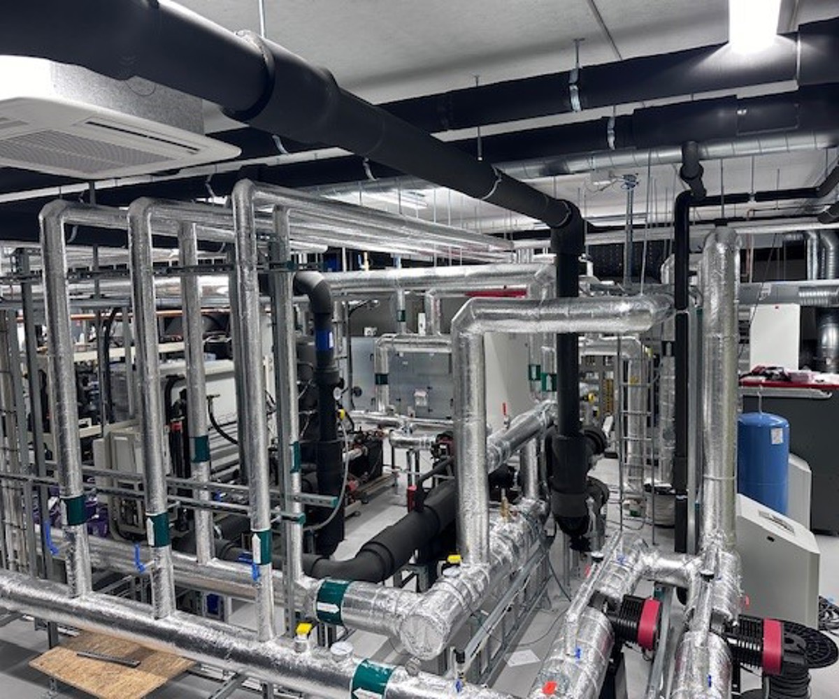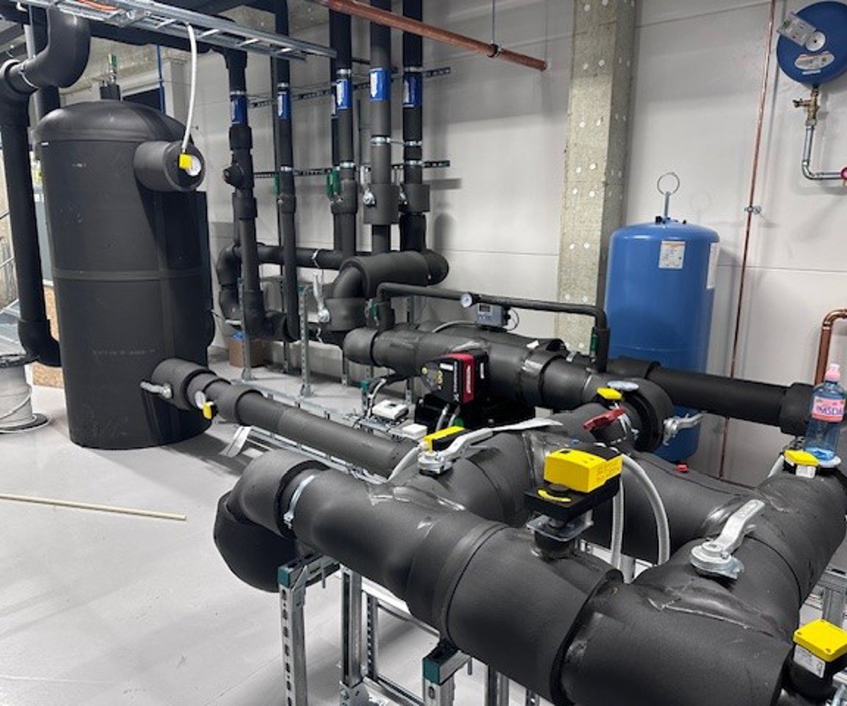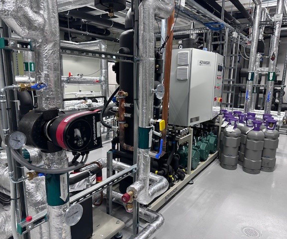 Leveransen inkluderer også et energieffektivt varmepumpeanlegg med 10 energibrønner og reversibel CO2 varmepumpe.