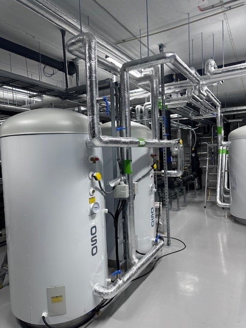 Leveransen inkluderer også et energieffektivt varmepumpeanlegg med 10 energibrønner og reversibel CO2 varmepumpe.